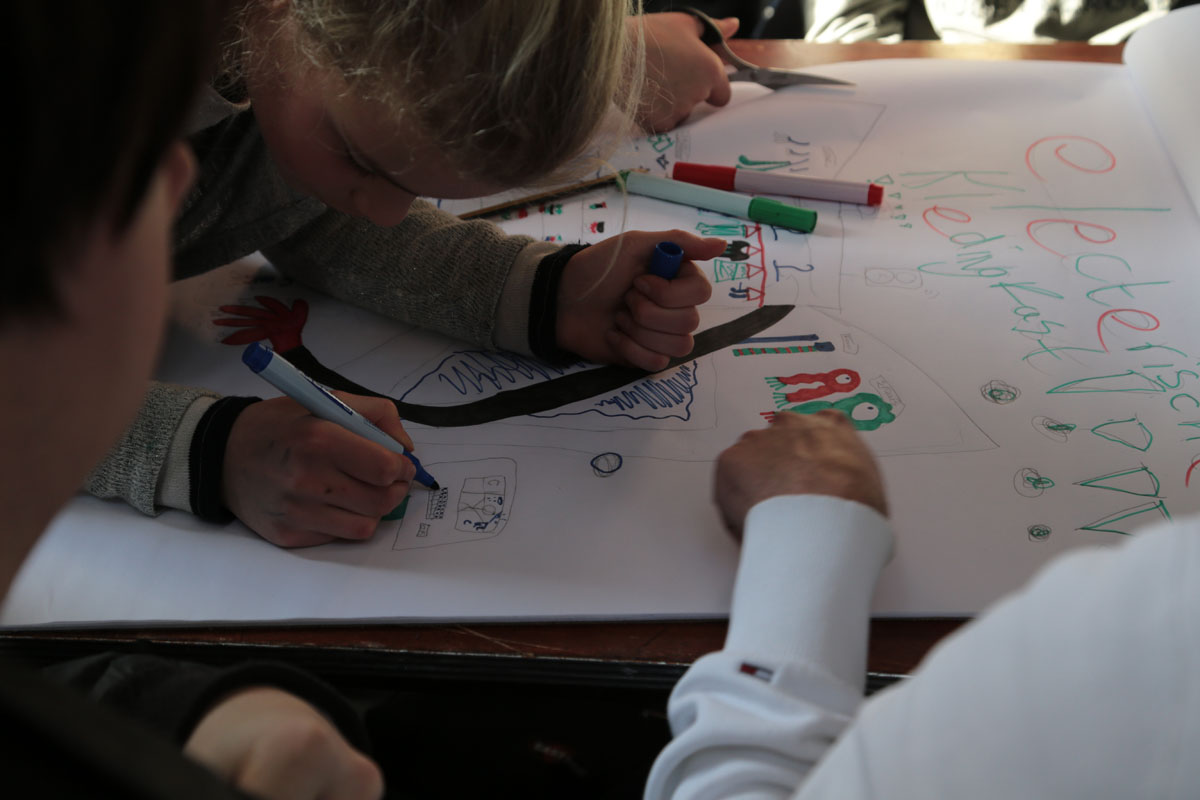 Inspired by the story of the Ontdekstation, first, second and third year students went to work on creative inventions together with the primary school kids. On day 1, the Monday, the story of the Ontdekstation was read aloud by the blue princess. Next it was time for some serious brainstorming on the part of the students and the kids, who were working in groups. How do you organise a brainstorm session with kids? A new experience for everyone!